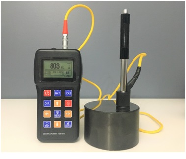 A hardness test is done to ensure specific values are met for manufacturing and or field implementation of a product or device. The ideal tool is a device that uses a pin that presses down hard onto any surface measuring the hardness of many material like metals.